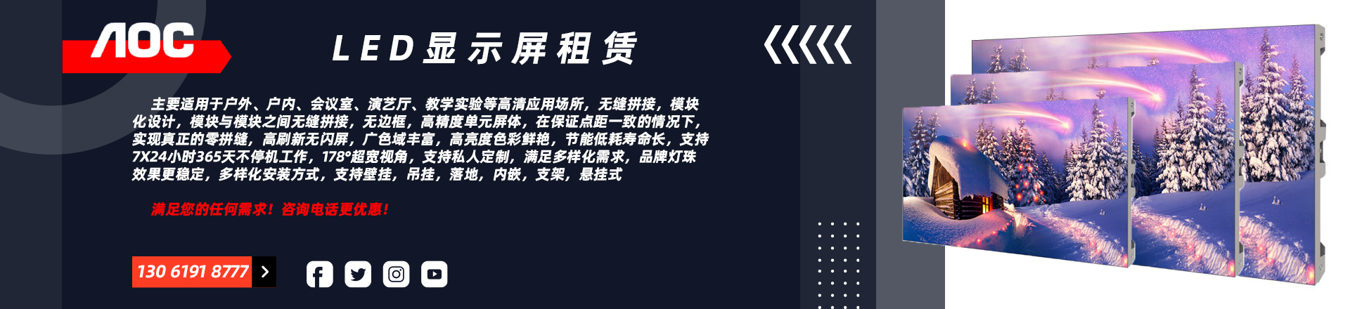 AOC P3 室內全彩led顯示屏 無縫拼接 舞臺 會議室 展廳 商場 廣場 戶外廣告電子屏 商用辦公大屏幕